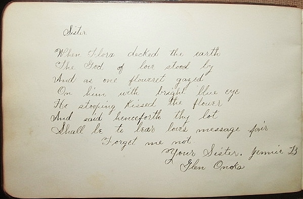 Mary’s sister Jennie wrote in the album, and under her name she wrote Glen Onoko (see below):