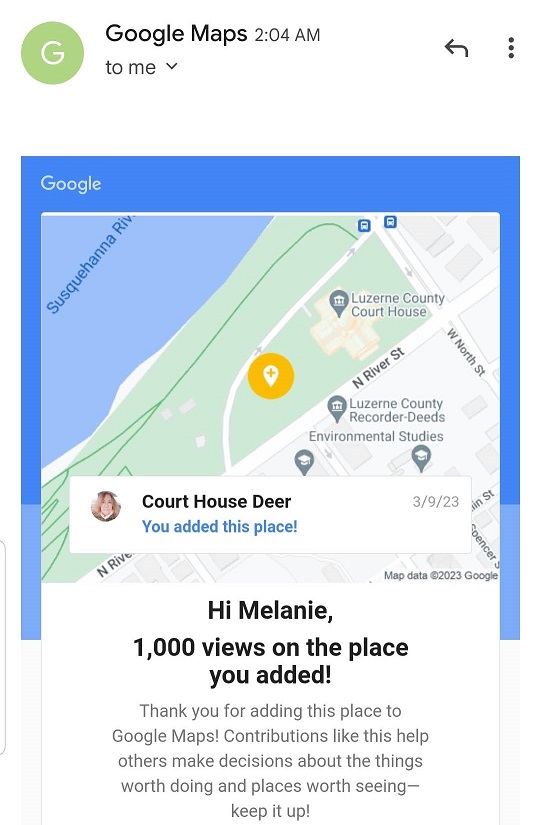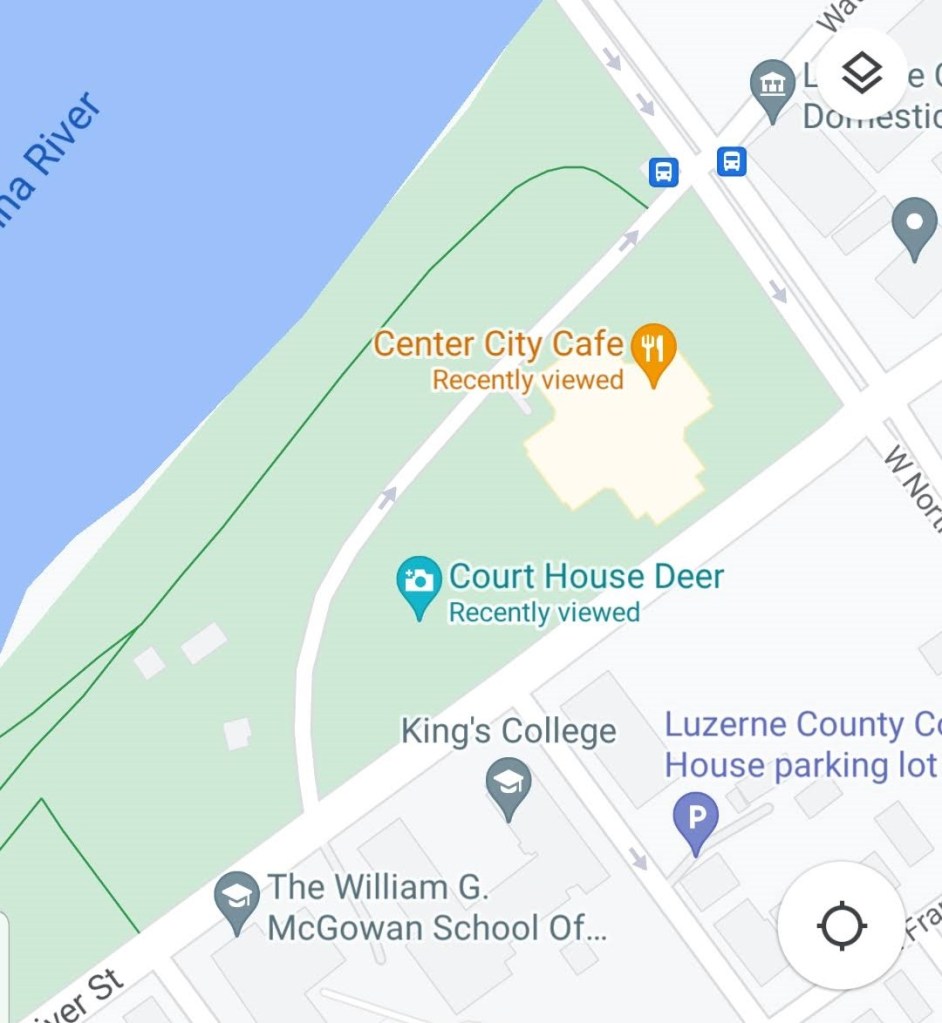 It all started when I couldn’t find the Court House Deer in Wilkes-Barre, Pennsylvania on Google Maps. I kept zooming in, expecting to see a pin for him appear at any moment. But it didn’t.