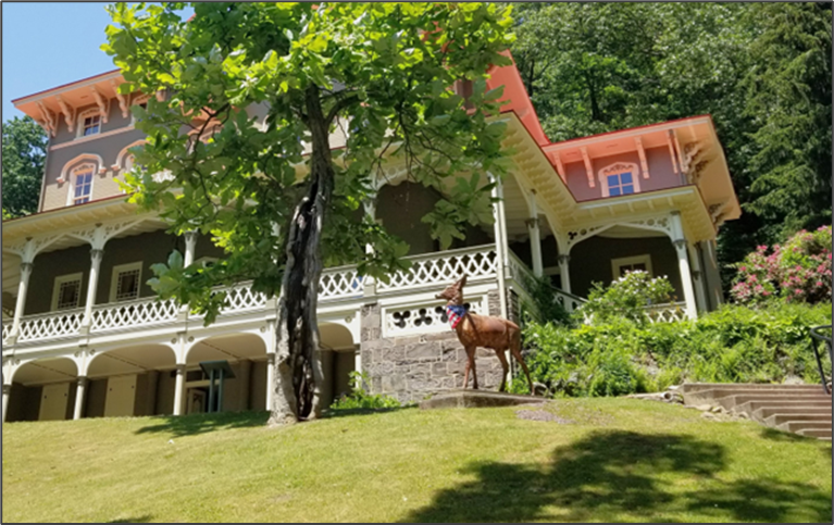 A couple of months ago, while doing more online research about the Court House Deer, I came across the mention of a deer statue at the Asa Packer Mansion. I was amazed that I’d never noticed it during my many visits to Jim Thorpe (my favorite getaway destination, known as “The Switzerland of America”). After Googling images of the Asa Packer deer, I was struck by how much it looks like the Court House Deer.