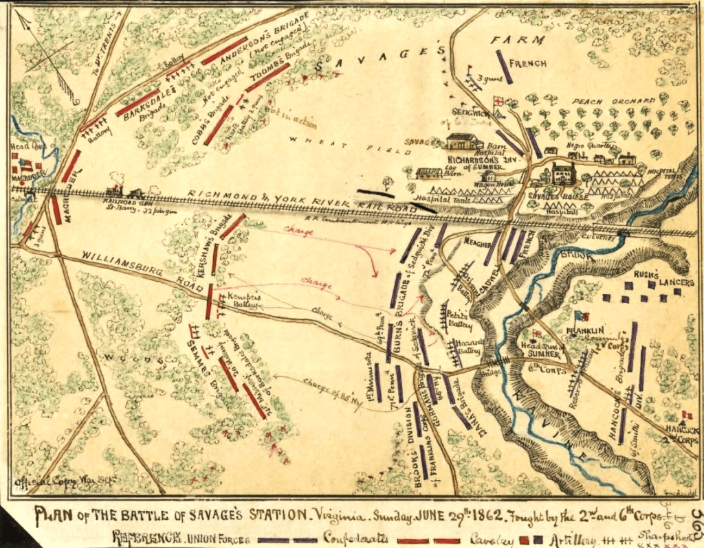 In the book are also several battle maps, including The Battle of Savage’s Station, seen below: